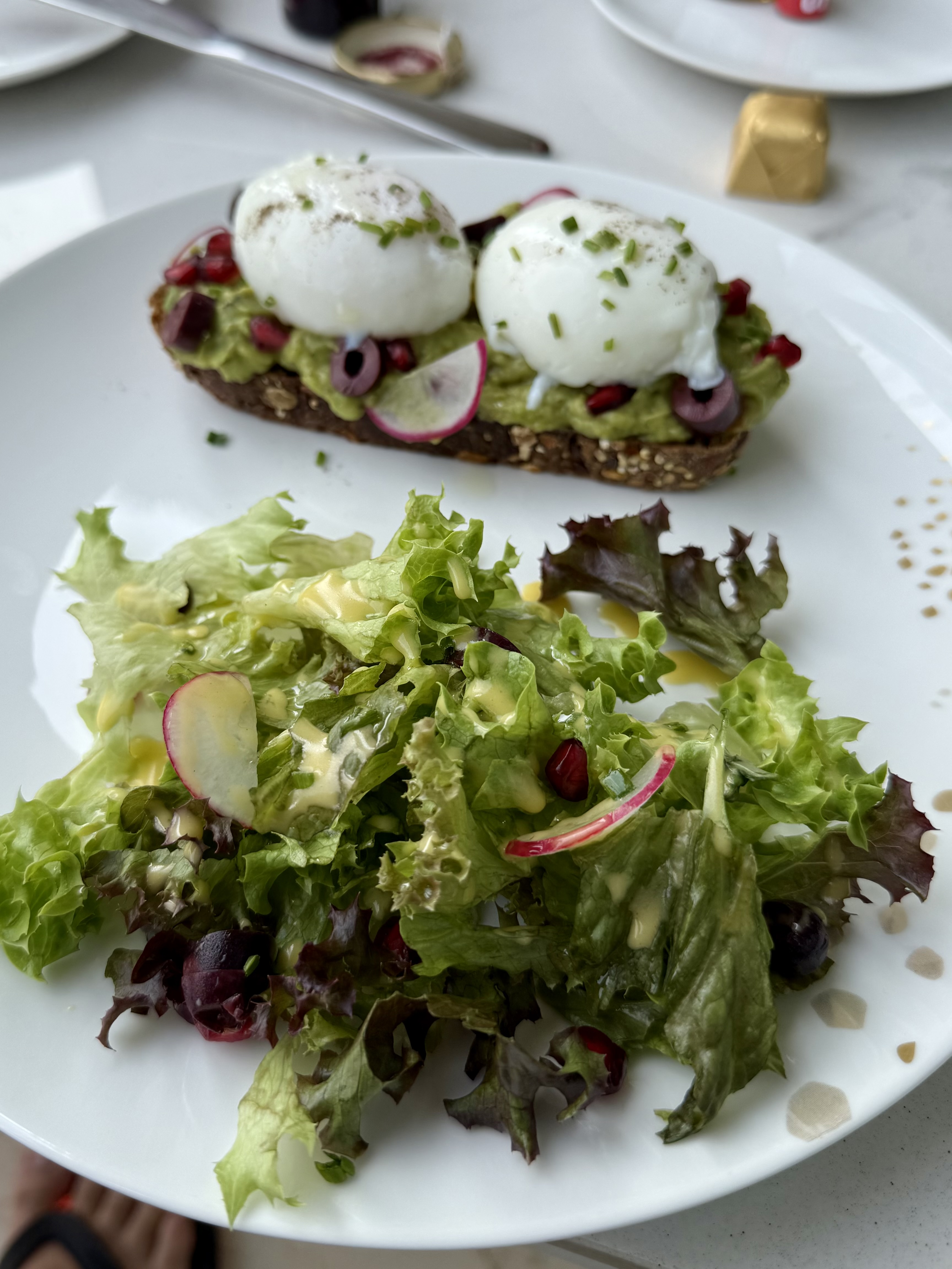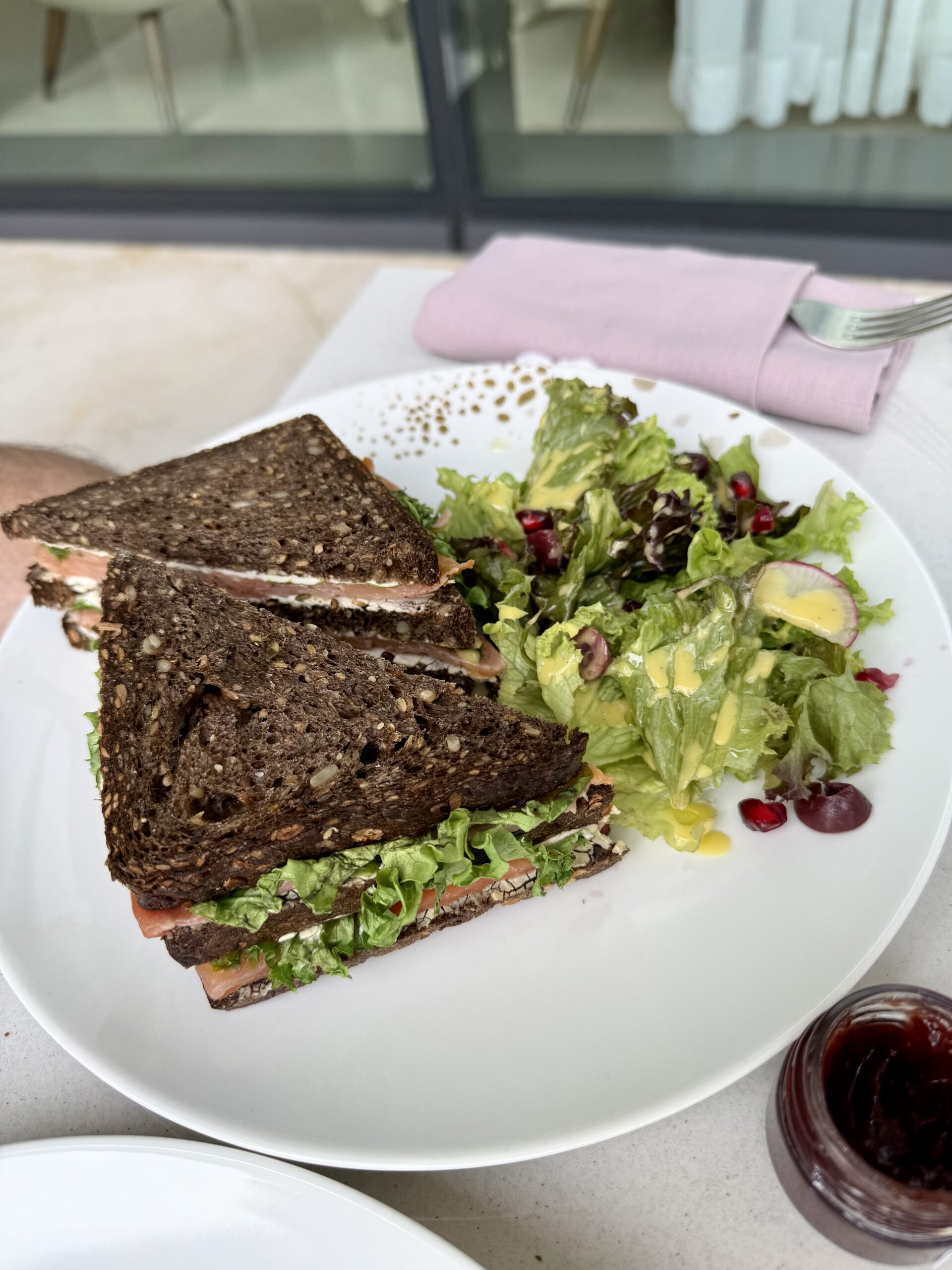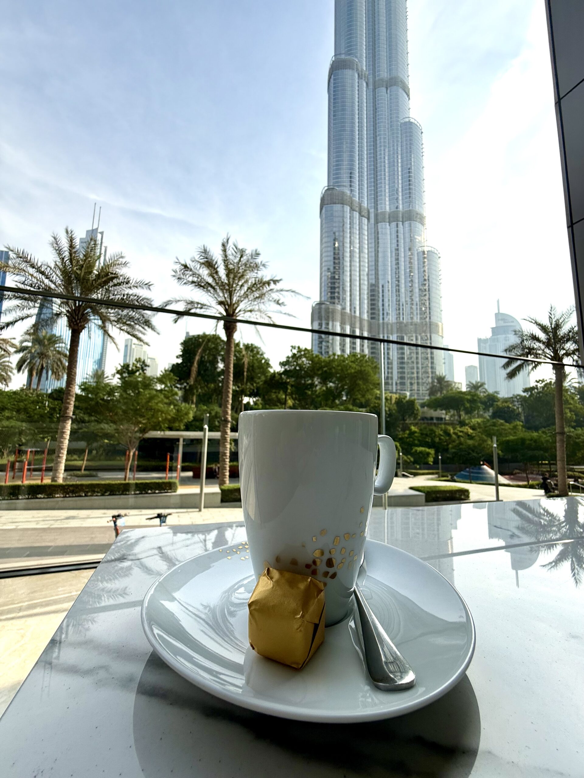 Śniadanie w Dubaju, lokalizacja Address Residences Dubai Opera czyli tam gdzie mieliśmy apartament. Miejsce sympatyczne z e względu na widok Burj Khalifa.